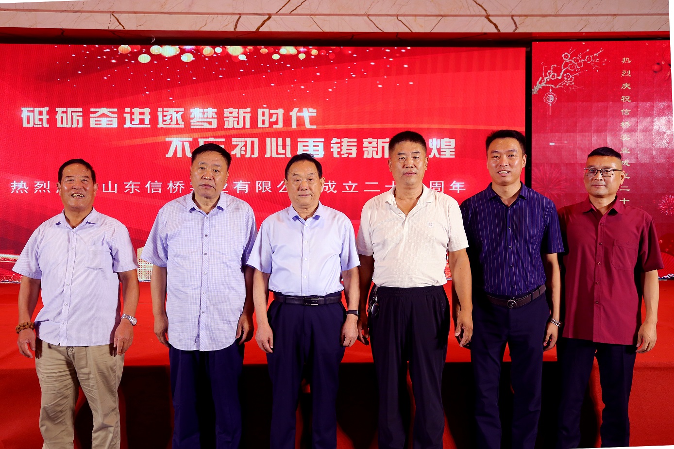 歲月如歌,風(fēng)霜如畫(huà),二十七年彈指一揮間,山東信橋?qū)崢I(yè)有限公司(以下簡(jiǎn)稱(chēng)山東信橋)迎來(lái)了二十七周年的生日。二十七年來(lái),信橋人在激烈的市場(chǎng)競(jìng)爭(zhēng)中奮力拼搏、砥礪前行,接受了市場(chǎng)風(fēng)風(fēng)雨雨的洗禮,取得了累累碩果。為了慶祝這一特殊的日子,2021年8月8日,以“拼搏進(jìn)取,開(kāi)創(chuàng)新時(shí)代”為主題的山東信橋二十七周年慶典活動(dòng)在寶盛大酒店舉行。