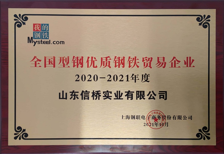 山東信橋?qū)崢I(yè)有限公司獲全國型鋼優(yōu)質(zhì)鋼鐵貿(mào)易企業(yè)(2020-2021年度)