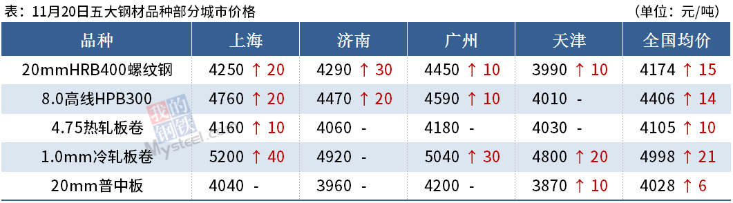 ◎ In late November, the ex-factory price of Zhongtian Steel increased by 130 for rebar, 130 for wire coil and 100 for strip steel.